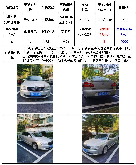 受委托,我公司定于2021年12月9日(星期四)下午14:30在安順市西秀區(qū)黃果樹大街345號黔中大廈安順農(nóng)行三樓會議室公開拍賣以下標的: