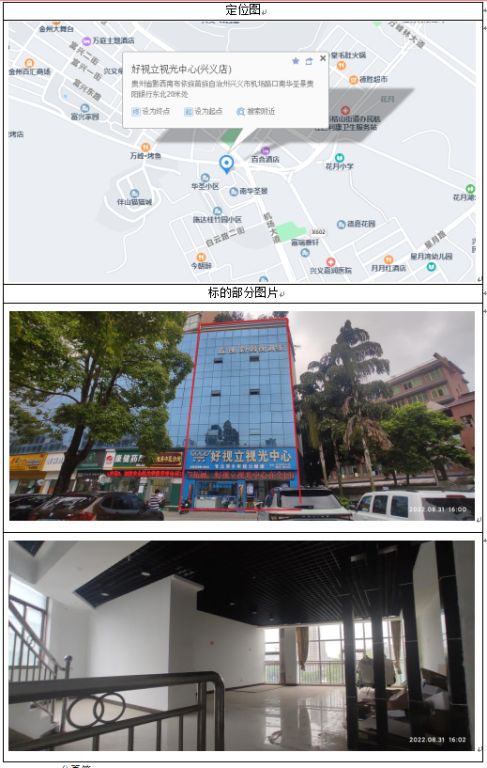 1、標(biāo)的位于興義市民航大道南華圣景4幢107號(hào)房屋,房屋總層數(shù)為16層,標(biāo)的所在層數(shù)為1-4層。產(chǎn)權(quán)證號(hào):黔(2018)興義市不動(dòng)產(chǎn)權(quán)第0016025號(hào),房屋證載建筑面積438.56㎡(專有建筑面積:402.24㎡,分?jǐn)偨ㄖ娣e:36.32㎡。每層房屋建筑面積均為109.64㎡),規(guī)劃用途為商業(yè)服務(wù),框架結(jié)構(gòu)。