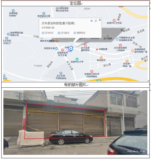 拍品編號(hào)1:貞豐縣龍場(chǎng)鎮(zhèn)興龍商貿(mào)區(qū)房屋及土地
