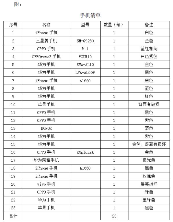 拍品編號1號:手機(jī)23部(整體拍賣)