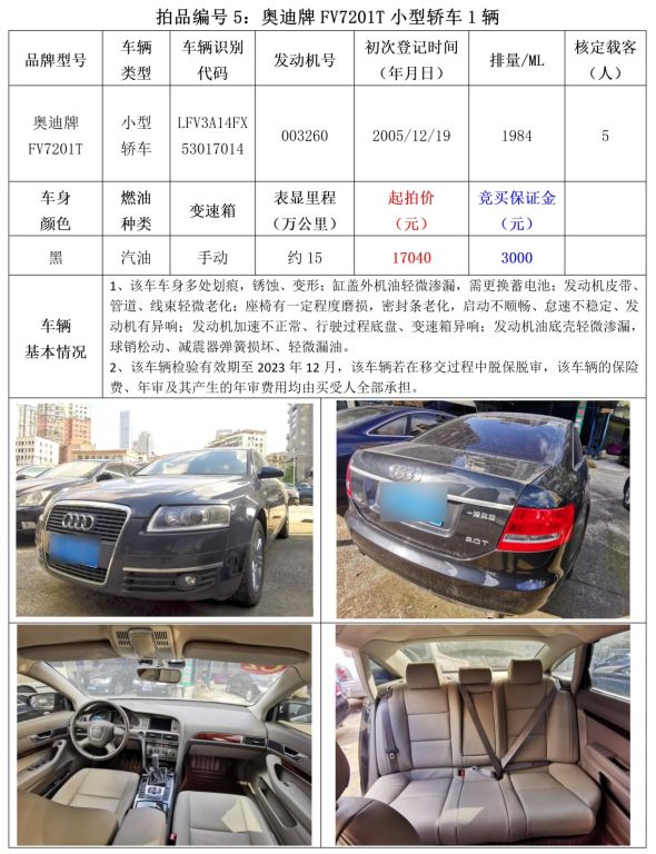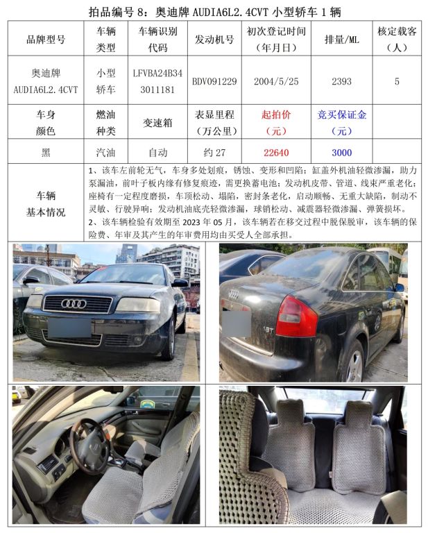 5、繳納競(jìng)買保證金的截止時(shí)間為:2023年5月31日中午12:00止,競(jìng)買保證金到賬情況以到貴州春秋拍賣有限責(zé)任公司賬戶顯示為準(zhǔn)。
