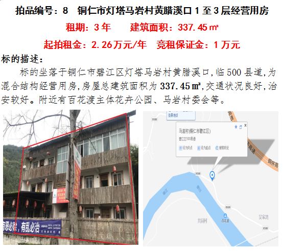 六、銅仁市碧江區(qū)燈塔馬巖村黃臘溪口13層經(jīng)營(yíng)3年租賃權(quán)(建筑面積:337.45㎡);