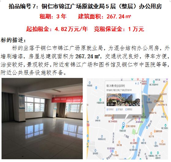 五、銅仁市錦江廣場(chǎng)原就業(yè)局第五層(整層)辦公用房3年租賃權(quán)(建筑面積:267.24㎡);
