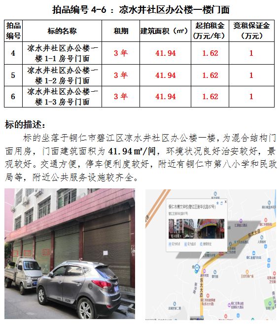 四、涼水井社區(qū)辦公樓一樓門(mén)面3間1-1、1-2、1-3)3年租賃權(quán)(建筑面積:41.94㎡/間);