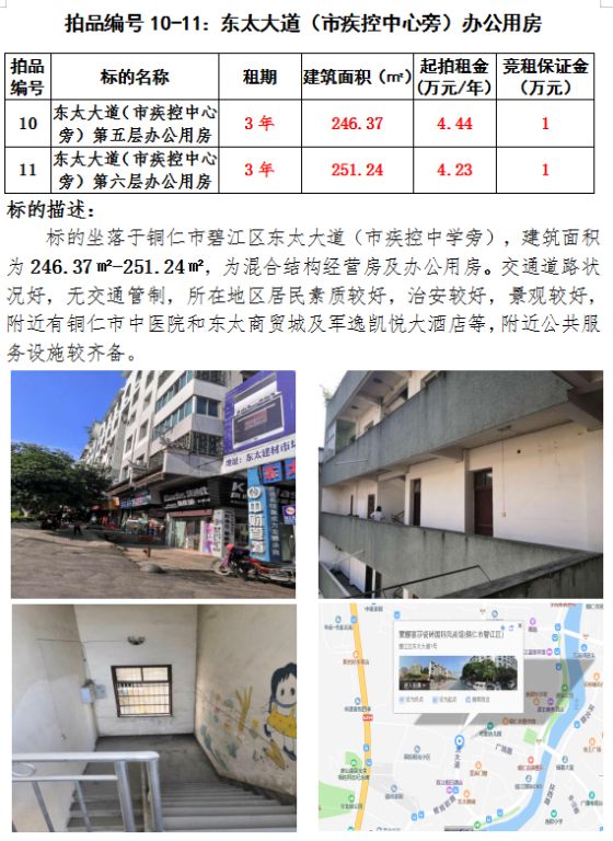 八、東太大道(市疾控中心旁)第五、六層(辦公用房)3年租賃權(quán)(建筑面積:246.37㎡-251.24㎡);