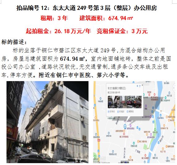 九、銅仁市碧江區(qū)東太大道249號(hào)辦公用房第三層(整層)3年租賃權(quán)(建筑面積:674.94㎡);