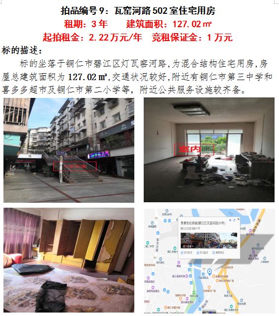 七、銅仁市碧江區(qū)瓦窯河路502室住宅用房3年租賃權(quán)(建筑面積:127.02㎡);