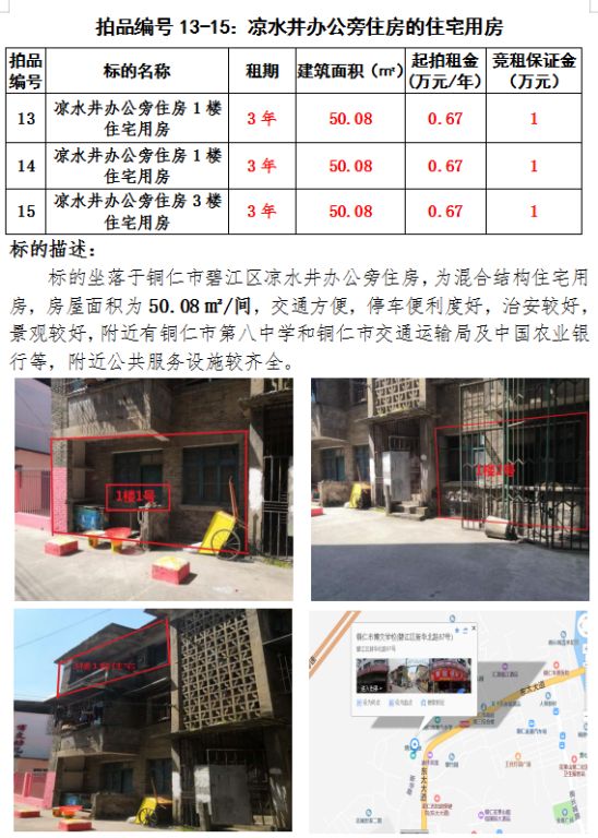 十、銅仁市碧江區(qū)涼水井辦公旁住房的住宅用房三間3年租賃權(quán)(建筑面積:50.08㎡/間)。