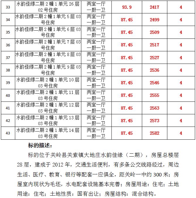 關(guān)嶺縣嶺秀國(guó)際、倚山花園、水韻佳緣共43套住宅用房標(biāo)的詳情