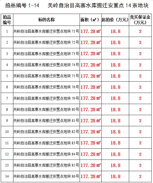 關(guān)嶺自治縣高寨水庫(kù)搬遷安置點(diǎn)14宗地塊標(biāo)的詳情