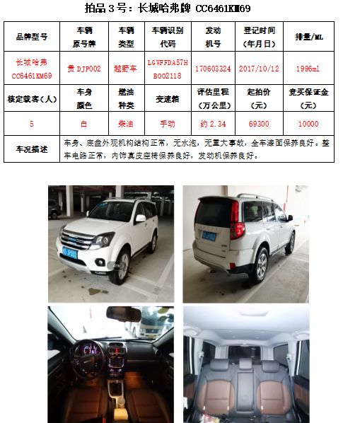 哈弗、路虎、柯斯達(dá)牌車輛拍賣信息