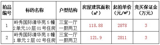 拍品1-2號(hào) 嶺秀國(guó)際清華苑2套住宅用房