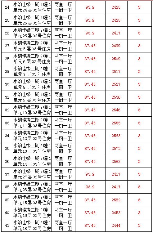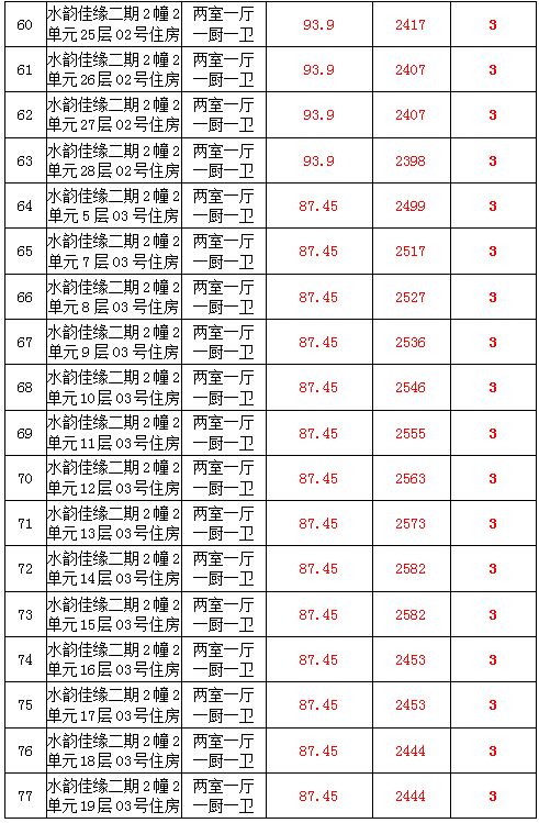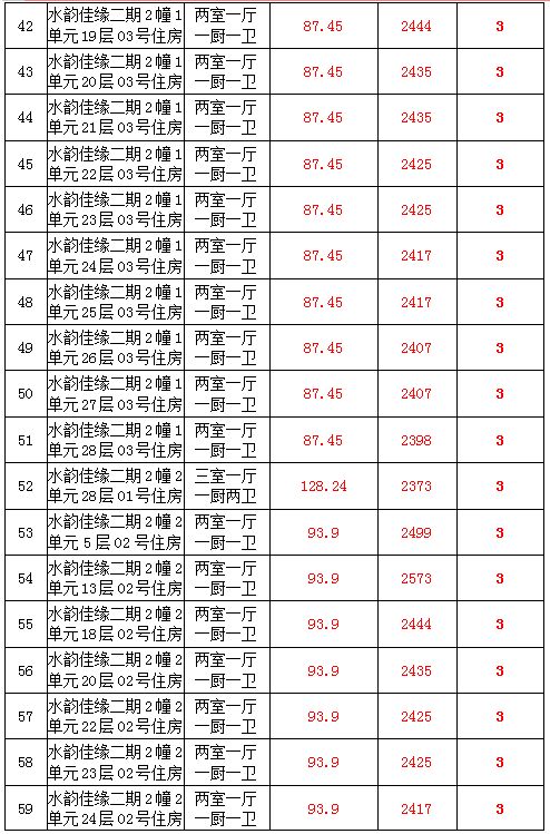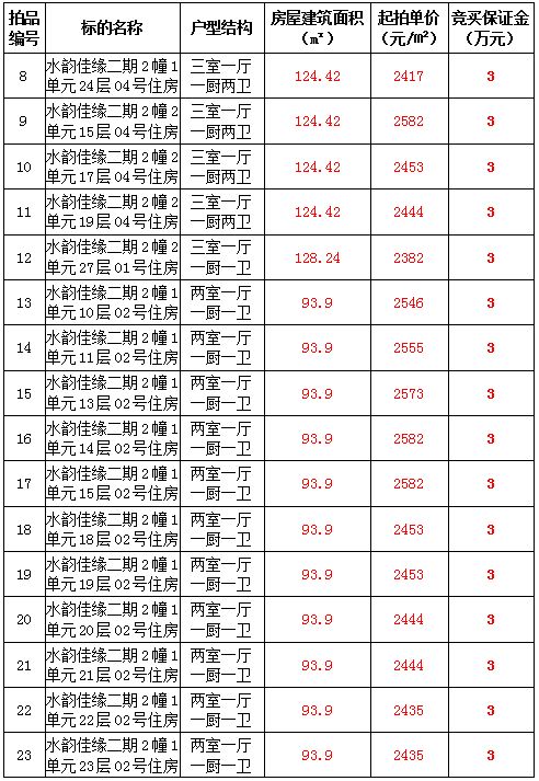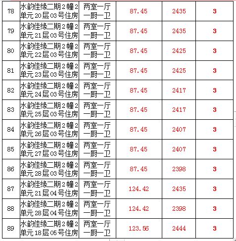 2、水韻佳緣82套住宅房產(chǎn),建筑面積:87.45—128.24㎡,起拍價(jià):2373—2582元/㎡;