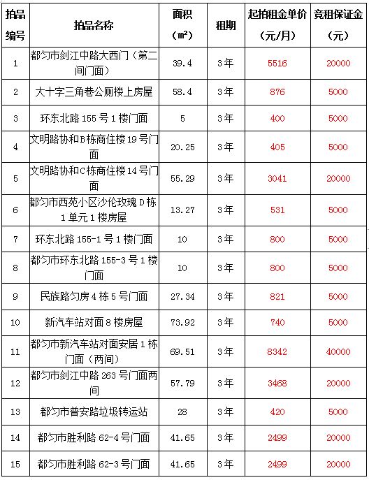 都勻市門面、房屋、空地等租賃權(quán)拍賣
