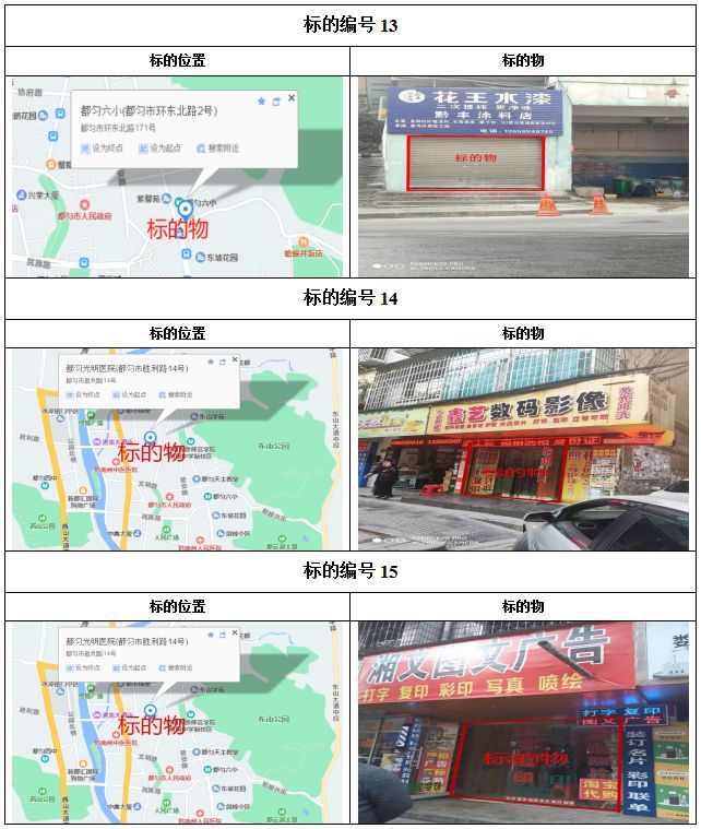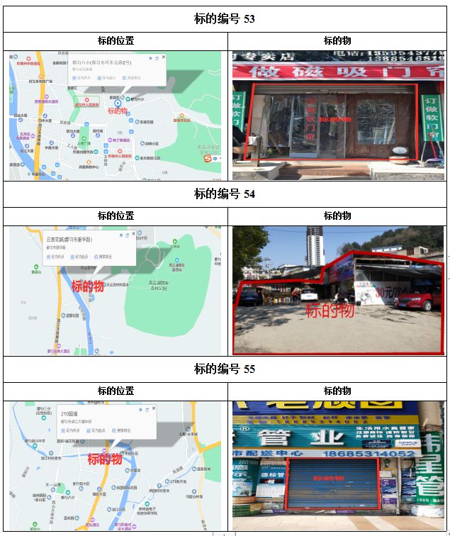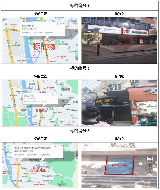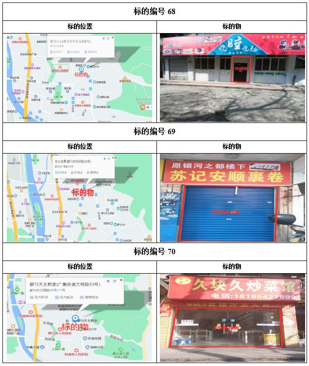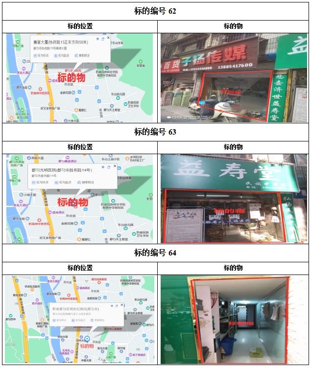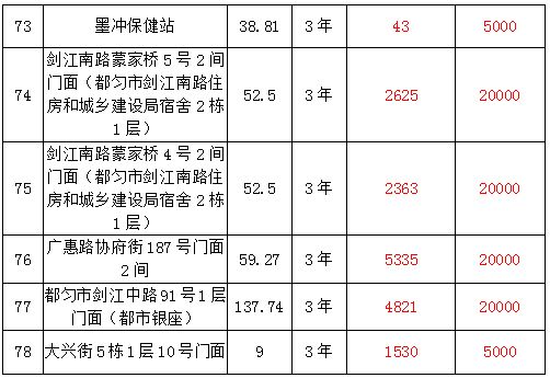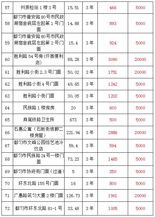 1、都勻市劍江中路、環(huán)東北路、文明路、民族路、勝利路、會(huì)云橋、育英巷等62處門面3年租賃權(quán),面積約5㎡-137.74㎡;