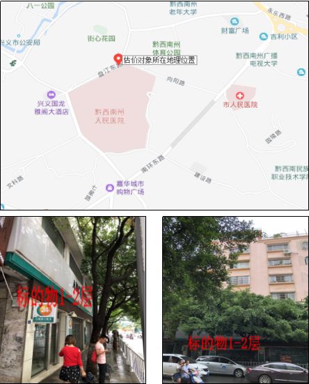 1、標(biāo)的物位于興義市盤(pán)江東路49號(hào)A幢第1號(hào)1-2層的綜合房地產(chǎn),標(biāo)的物建成于2005年,南面臨盤(pán)江東路,其余三面均臨多層建筑樓棟?;旌辖Y(jié)構(gòu),水電、生活燃?xì)?、消防等設(shè)施齊全。使用正常,維護(hù)狀況較好,普通裝修,地面鋪地磚,墻面及頂面刮瓷粉刷乳膠漆,鋁合金窗,防盜門(mén)、卷簾門(mén)、木門(mén)。