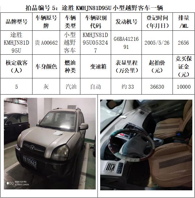 受委托,本公司定于2021年3月26日(星期五)下午14:30時,在貴陽市中華南路20號新大陸數(shù)碼廣場10樓D座拍賣廳公開拍賣以下車輛:普拉多越野車1輛、超級維特拉越野車1輛、別克商務(wù)旅行車1輛、輝騰轎車1輛、途勝越野車1輛、雅閣轎車2輛、奧迪轎車1輛,長城牌小型越野客車1輛,共計9輛車。