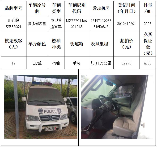 受委托,本公司定于2021年5月12日(星期三)下午14:30時,在羅甸縣龍坪鎮(zhèn)河濱路紅水河投資有限責任公司二樓會議室公開拍賣:途安牌小型普通客車2輛,起亞牌小型普通客車1輛,匯眾牌中型普通客車1輛,共計4輛車。
