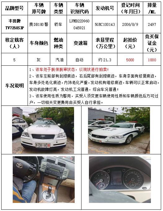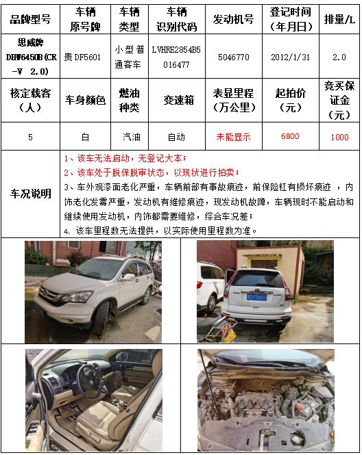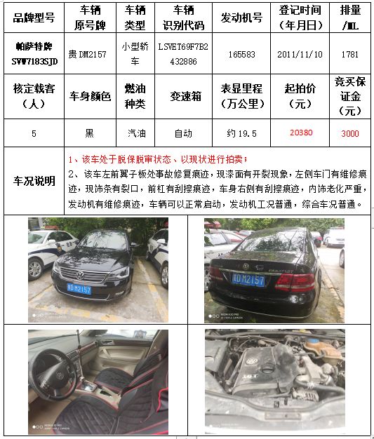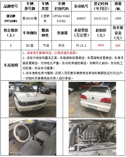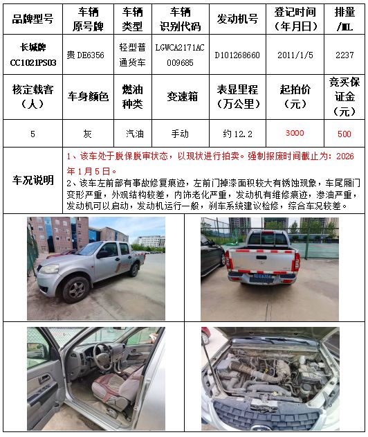 受委托,本公司定于2021年9月16日(星期四)下午14:30時,在銅仁市碧江區(qū)川硐教育園區(qū)誠信路銅仁市公共資源交易中心開標(biāo)六室(拍賣大廳)公開拍賣以下車輛: