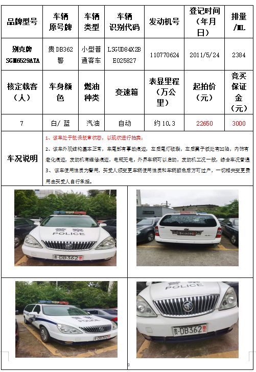 拍品編號4:別克牌SGM6529ATA小型普通客車一輛