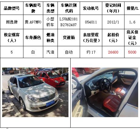 拍品編號6:朗逸牌小型轎車一輛