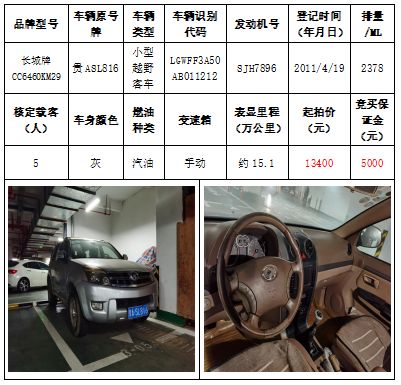 拍品編號4:長城牌CC6460KM29小型越野客車一輛