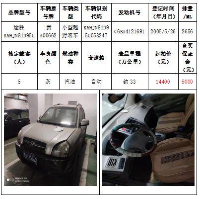 拍品編號3:途勝KMHJN81D95U小型越野客車一輛