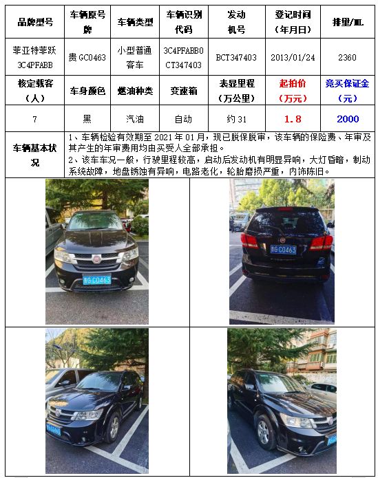 拍品編號(hào)5:菲亞特菲躍3C4PFABB小型普通客車(chē)一輛