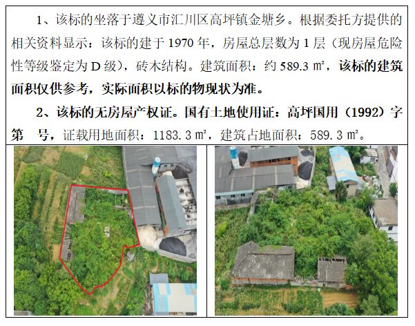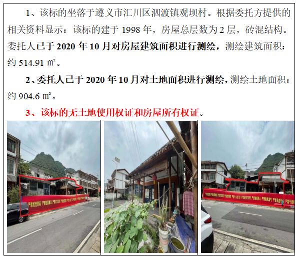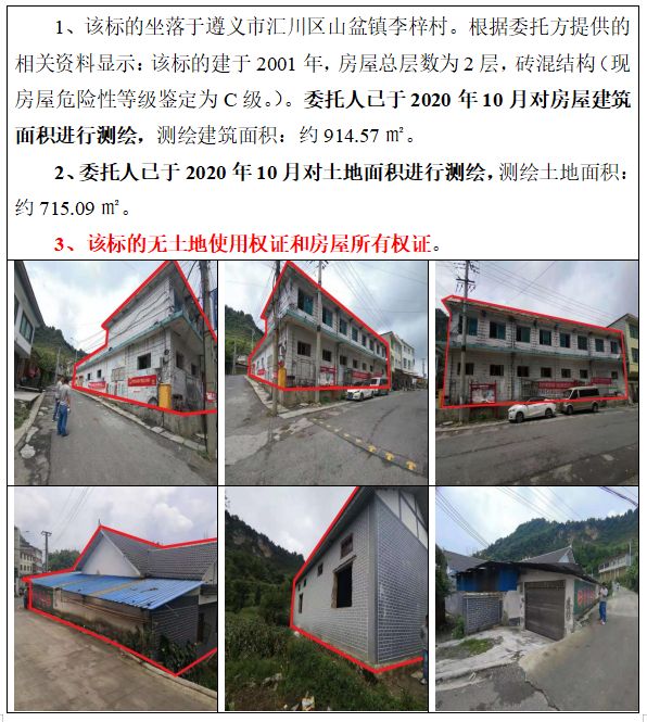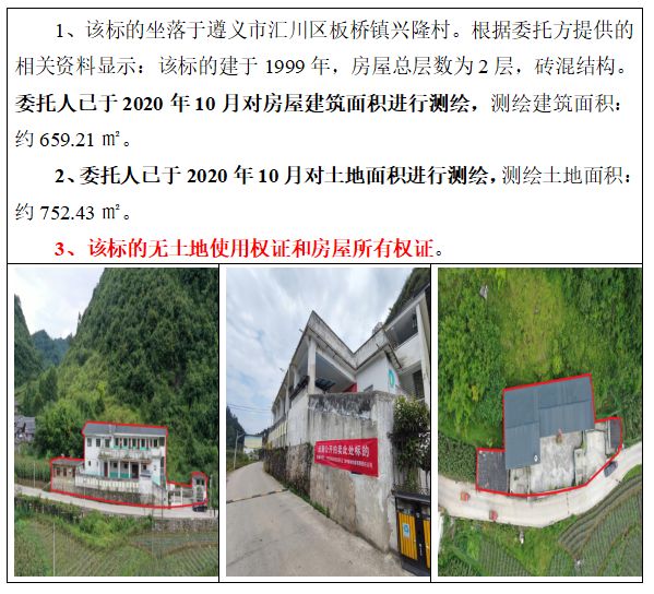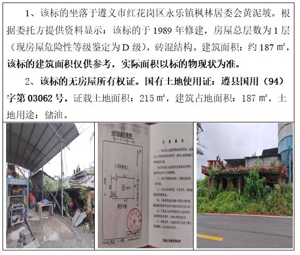 1、板橋站大溝點庫房,測繪建筑面積:約1107.69㎡(證載建筑面積:472㎡),測繪土地面積:約2397.79㎡,起拍價:18萬元;