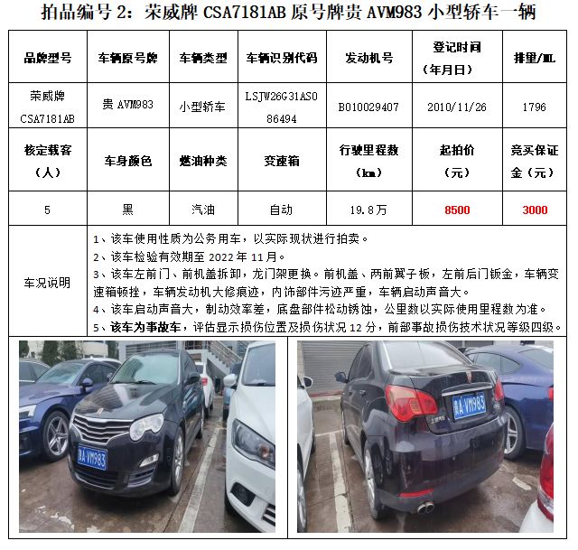 【已結(jié)束】貴州春秋拍賣10輛機(jī)動車拍賣公告