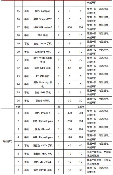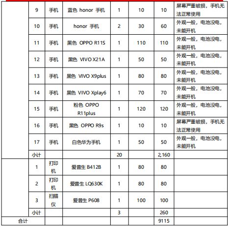 該批標(biāo)的包含各類品牌手機(jī)52部;麻將機(jī)9臺(tái);打印機(jī)3臺(tái)。(詳見后附手機(jī)、麻將機(jī)、打印機(jī)清單)。