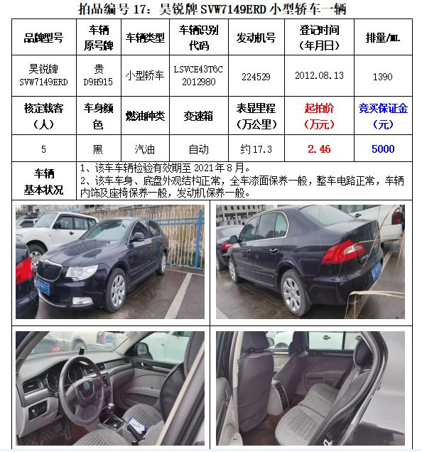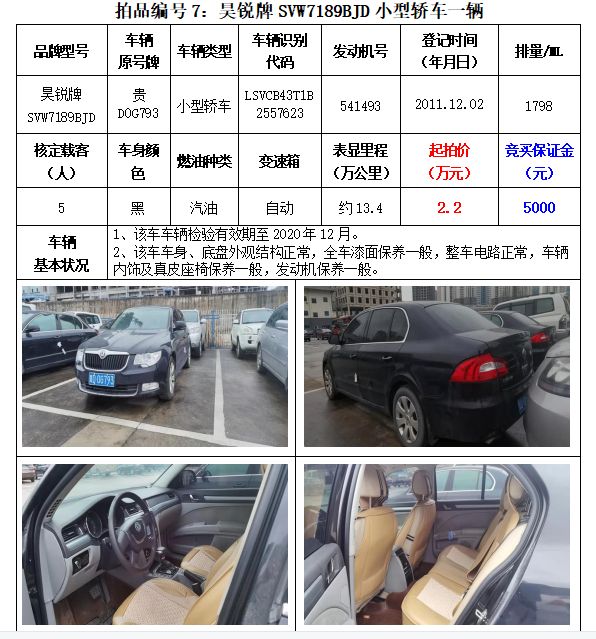 貴州春秋拍賣有限責(zé)任公司:機(jī)動(dòng)車拍賣公告