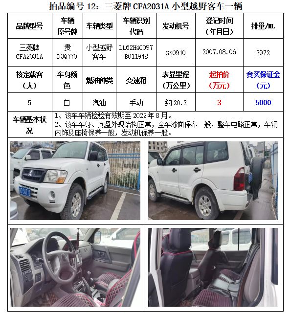 【已結(jié)束】貴州春秋拍賣(mài)有限責(zé)任公司:機(jī)動(dòng)車(chē)拍賣(mài)公告