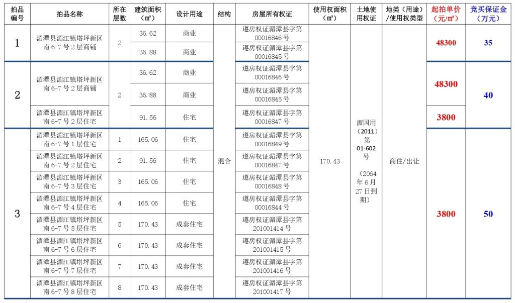 拍品1-3號:湄潭縣湄江鎮(zhèn)塔坪新區(qū)6-7號“回家大酒店”商鋪及住房