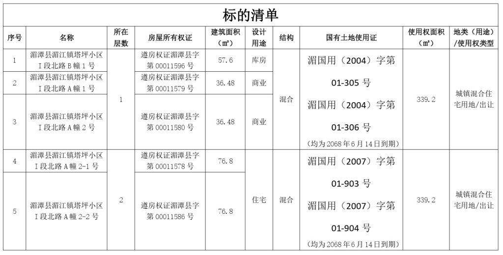 該批標(biāo)的位于湄潭縣永興鎮(zhèn)西大街臨街商鋪,共計11間(建筑面積:46.89㎡—264.68㎡)。標(biāo)的坐西向東,房屋結(jié)構(gòu)為框混結(jié)構(gòu),建成于2015年5月,水、電設(shè)施齊全;土地使用權(quán)年限為50年,截止日期至2059年11月。