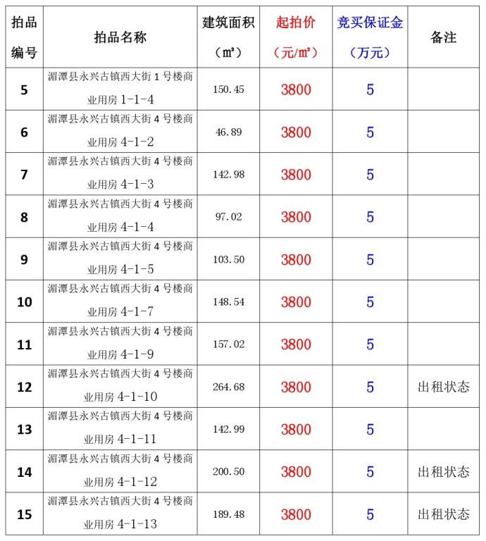 拍品5-15號:湄潭縣永興古鎮(zhèn)西大街1、4號樓商鋪
