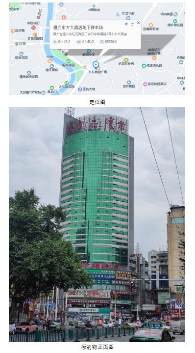 (1)該標(biāo)的位于遵義市丁字口遵義大飯店主塔樓7層,地處遵義市繁華地段,周邊商業(yè)氛圍濃重,交通便利,水、電、電梯、通訊、消防等設(shè)施齊全,無物業(yè)費(fèi)。