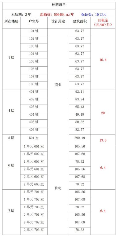 租賃期:2年 起拍價(jià):506484元/年 競(jìng)租保證金:10萬(wàn)元
