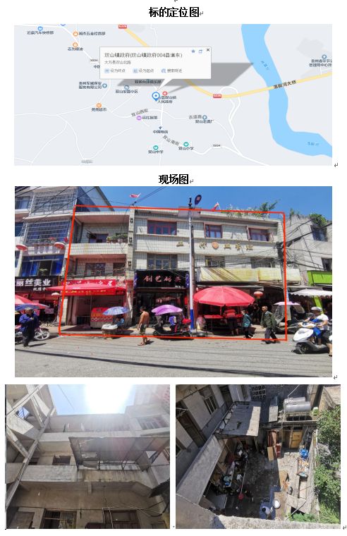 1、該標的位于大方縣雙山鎮(zhèn)富民北路(004縣道旁),建成于1996年,占地面積156.13㎡。樓層共三層,總建筑面積:404.62㎡,一層為臨街商鋪4間。水、電設施齊全,裝修一般,房屋建筑結構為磚混結構,規(guī)劃條件為辦公樓,土地用途為公共管理和公共服務用地。