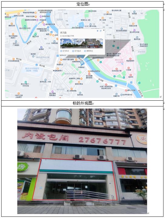 1、標(biāo)的位于貴州省遵義市匯川區(qū)洗馬路康海世紀(jì)花城美倫花鄉(xiāng)A、B棟1層3號(hào),東臨洗馬路,南臨新舟路,其余兩面臨其他物業(yè)地塊;周邊商業(yè)氛圍濃重,交通便利,水、電設(shè)施齊全。標(biāo)的按照銀行營業(yè)點(diǎn)進(jìn)行過簡單裝修。