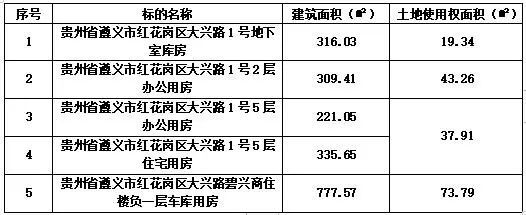 拍品編號(hào)5:貴州省遵義市紅花崗大興路地下室、辦公樓、住宅、車庫(整體拍賣)
