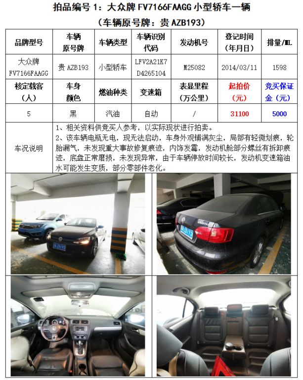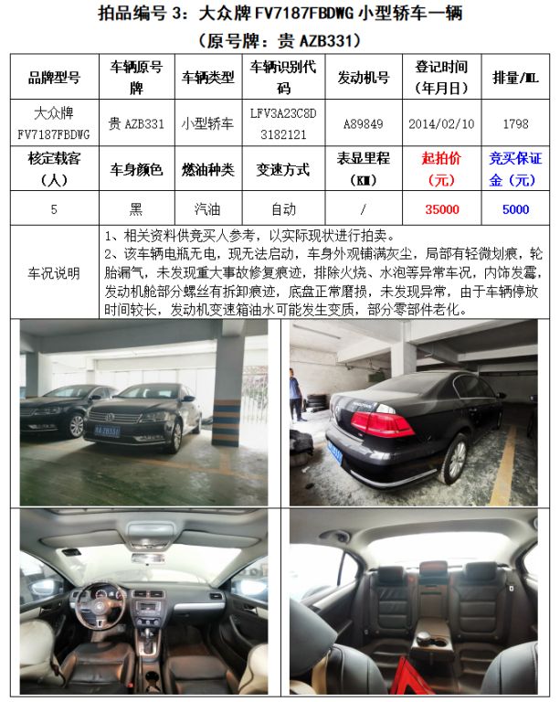 【01月19日】三輛機(jī)動(dòng)車(chē)拍賣(mài)