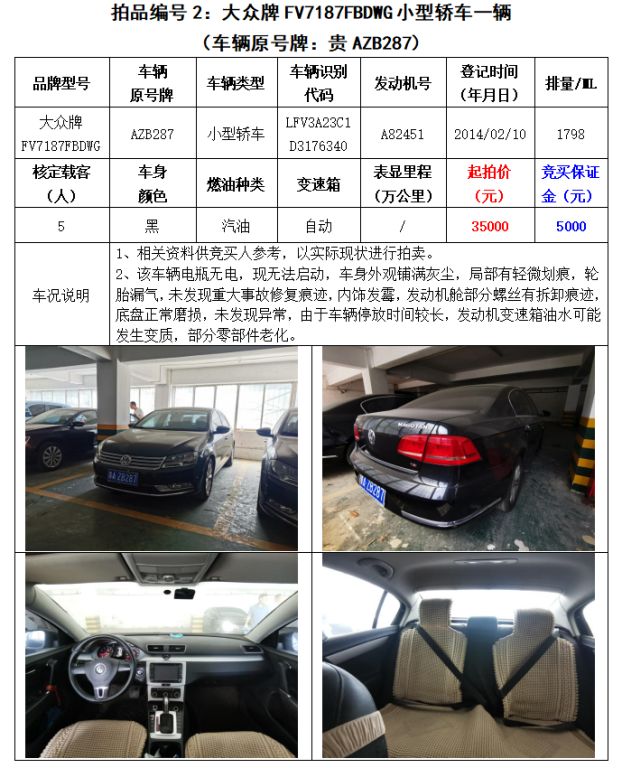 大眾牌FV7166FAAGG小型轎車(chē)、大眾牌FV7187FBDWG小型轎車(chē),共計(jì)三輛。