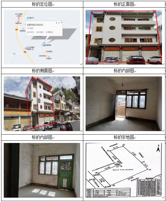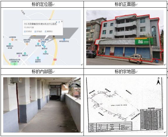 標(biāo)的坐落于貴州省興仁市屯腳鎮(zhèn)街上,房屋總層數(shù)4層,共有宗地面積401.37㎡,房屋建筑面積:607.4㎡,房屋結(jié)構(gòu):混合結(jié)構(gòu),房屋產(chǎn)權(quán)證號(hào):黔(2023)興仁市不動(dòng)產(chǎn)權(quán)第0005222號(hào),權(quán)利類型:國(guó)有建設(shè)用地使用權(quán)/房屋所有權(quán),權(quán)利性質(zhì):出讓/自建房,用途:商務(wù)金融用地/商業(yè)、金融、信息,使用期限:2012年9月29日起2052年9月28日止。