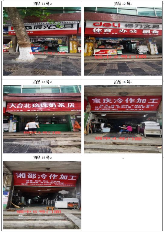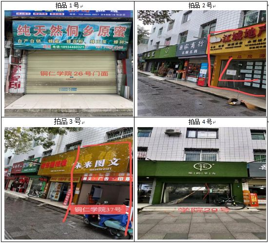 拍品2號(hào)至6號(hào)標(biāo)的:位于清水大道銅仁附中對(duì)面,面積均為:27.5㎡,租賃期均為3年(2023年7月1日至2026年6月30日),附近有車(chē)站、醫(yī)院、銀行、酒店、超市、學(xué)校等,交通便利,人流量大。