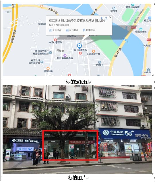 標(biāo)的位于貴州省榕江縣古州鎮(zhèn)古州北路89號(hào),磚混結(jié)構(gòu),2003年建成,室內(nèi)照明、通訊、水電等配套設(shè)施齊全,入戶門為卷簾門,維護(hù)狀況一般,目前為閑置狀態(tài),營(yíng)業(yè)用房部分層高約4.5m、無(wú)證部分層高約2m。