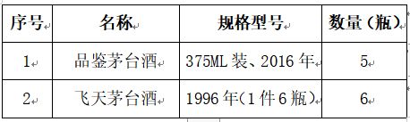 拍品編號1:品鑒茅臺酒(5瓶)、飛天茅臺酒(6瓶)(整體拍賣)