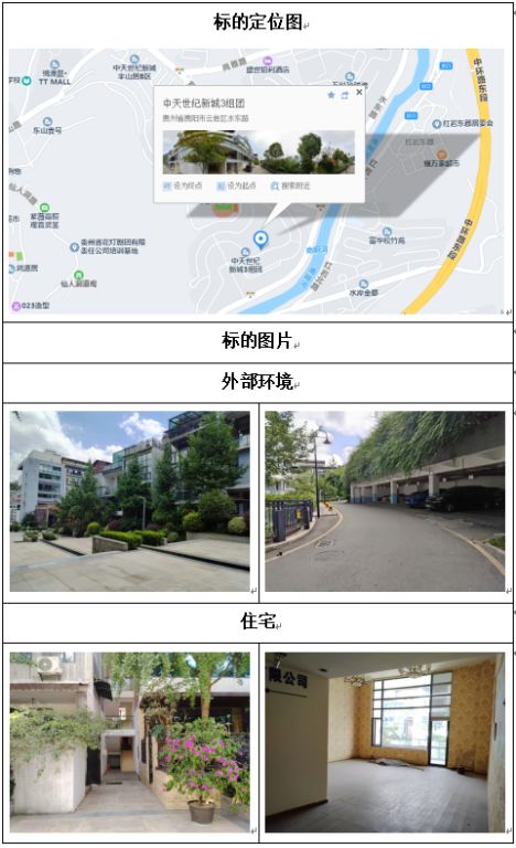 該標(biāo)的位于貴陽市水口寺中天世紀(jì)新城三組團(tuán)B1棟1單元3層2號及貴陽市南明區(qū)水口寺中天世紀(jì)新城三組團(tuán)G2棟負(fù)1層3號。