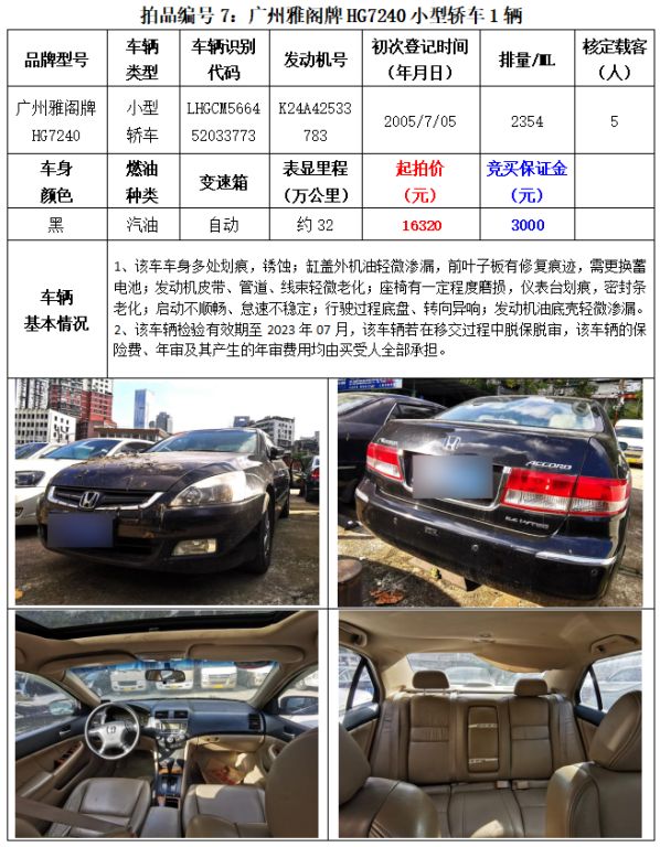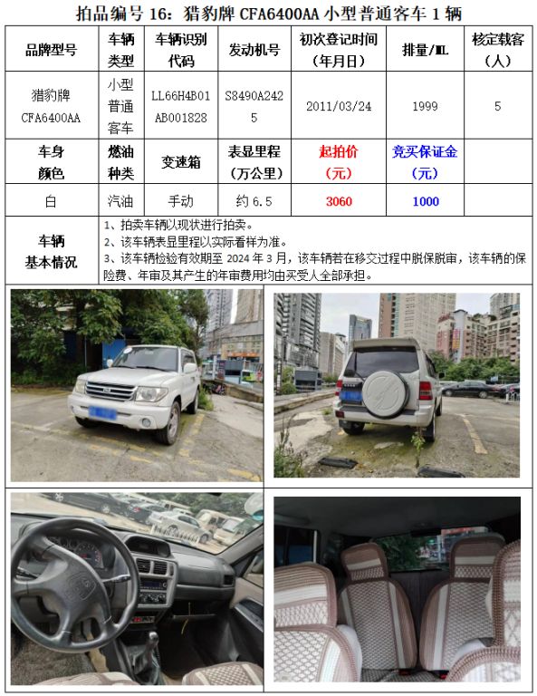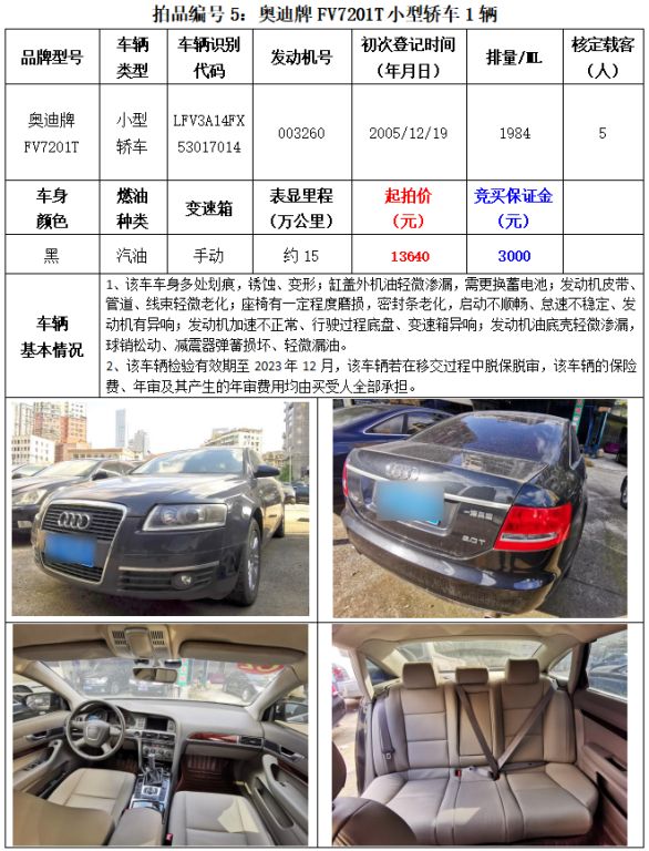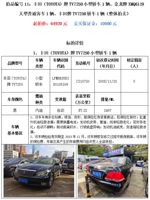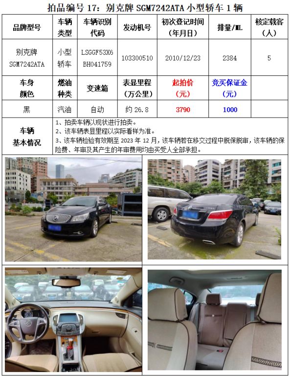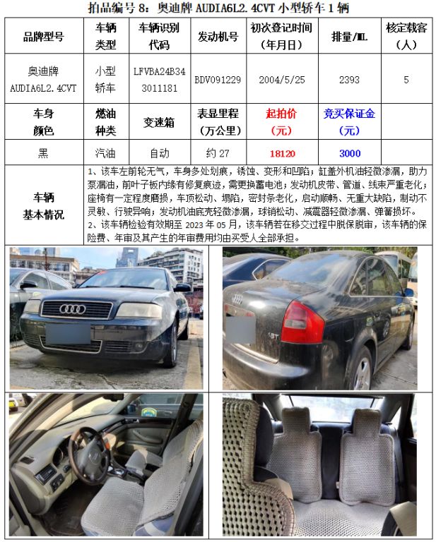 5、繳納競買保證金的截止時間為:2023年8月25日中午12:00止,競買保證金到賬情況以到貴州春秋拍賣有限責(zé)任公司賬戶顯示為準(zhǔn)。