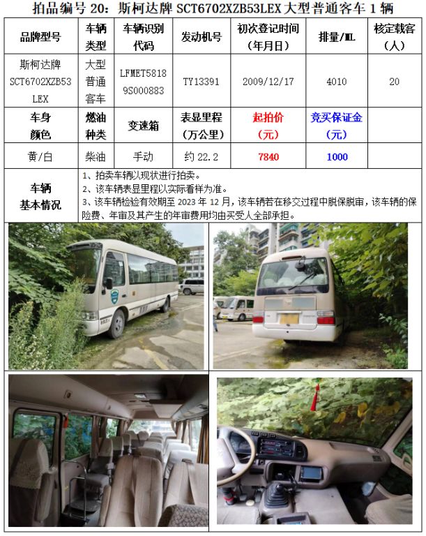 受委托,我公司定于2023年8月25日(星期四)下午14:30時,在貴州省公共資源交易中心開標(biāo)室多功能廳(貴陽市南明區(qū)遵義路)公開拍賣以下標(biāo)的: